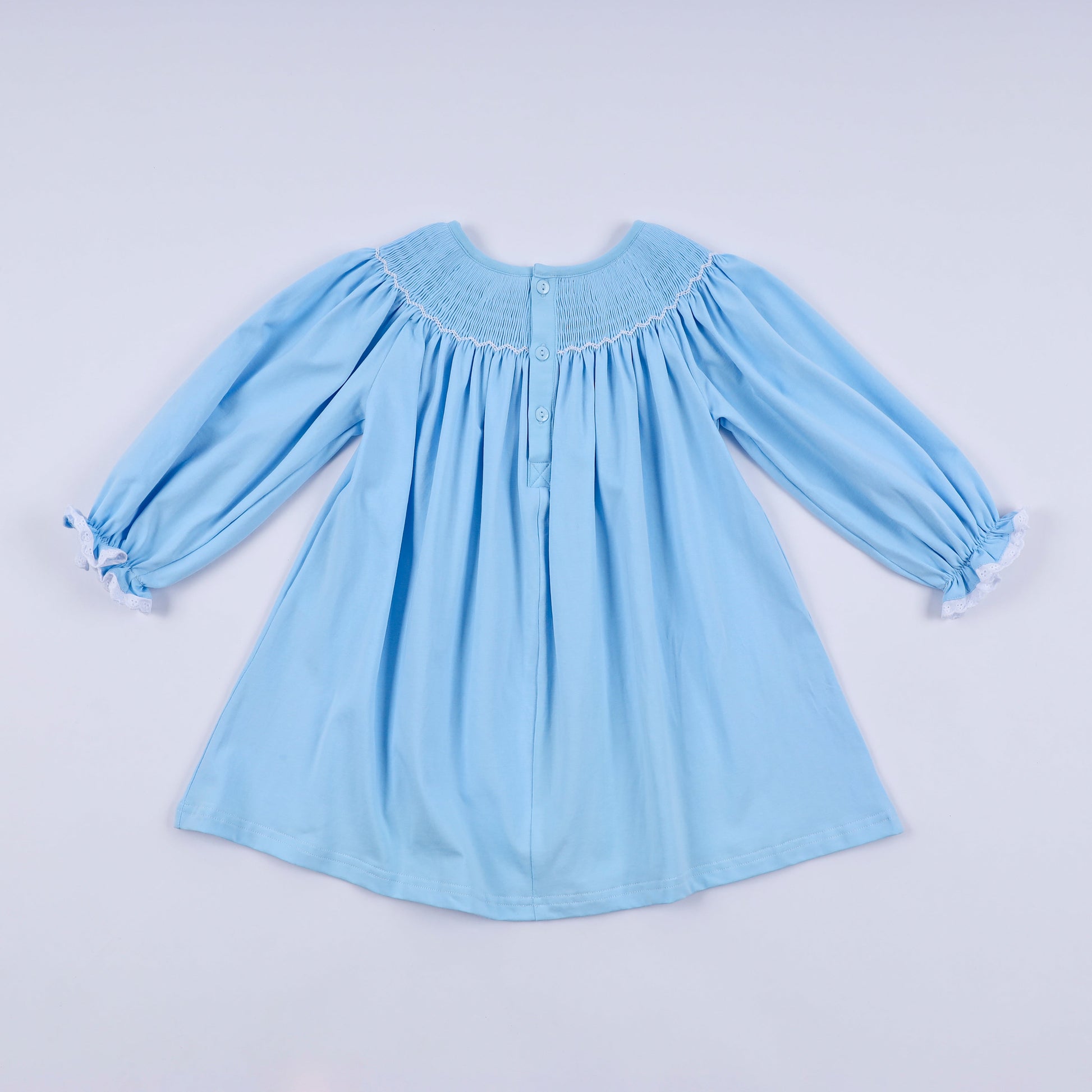 Celebrate the season in style with this charming blue nativity hand smocked dress! Featuring delicate hand-smocking details that showcase traditional craftsmanship, this dress brings festive cheer with a whimsical twist. The soft blue hue pairs perfectly with holiday gatherings, while the intricate smocking adds texture and visual interest. Ideal for special occasions, photo sessions, or spreading Christmas joy wherever she goes. A timeless piece that captures the magic of the nativity story with playful elegance.