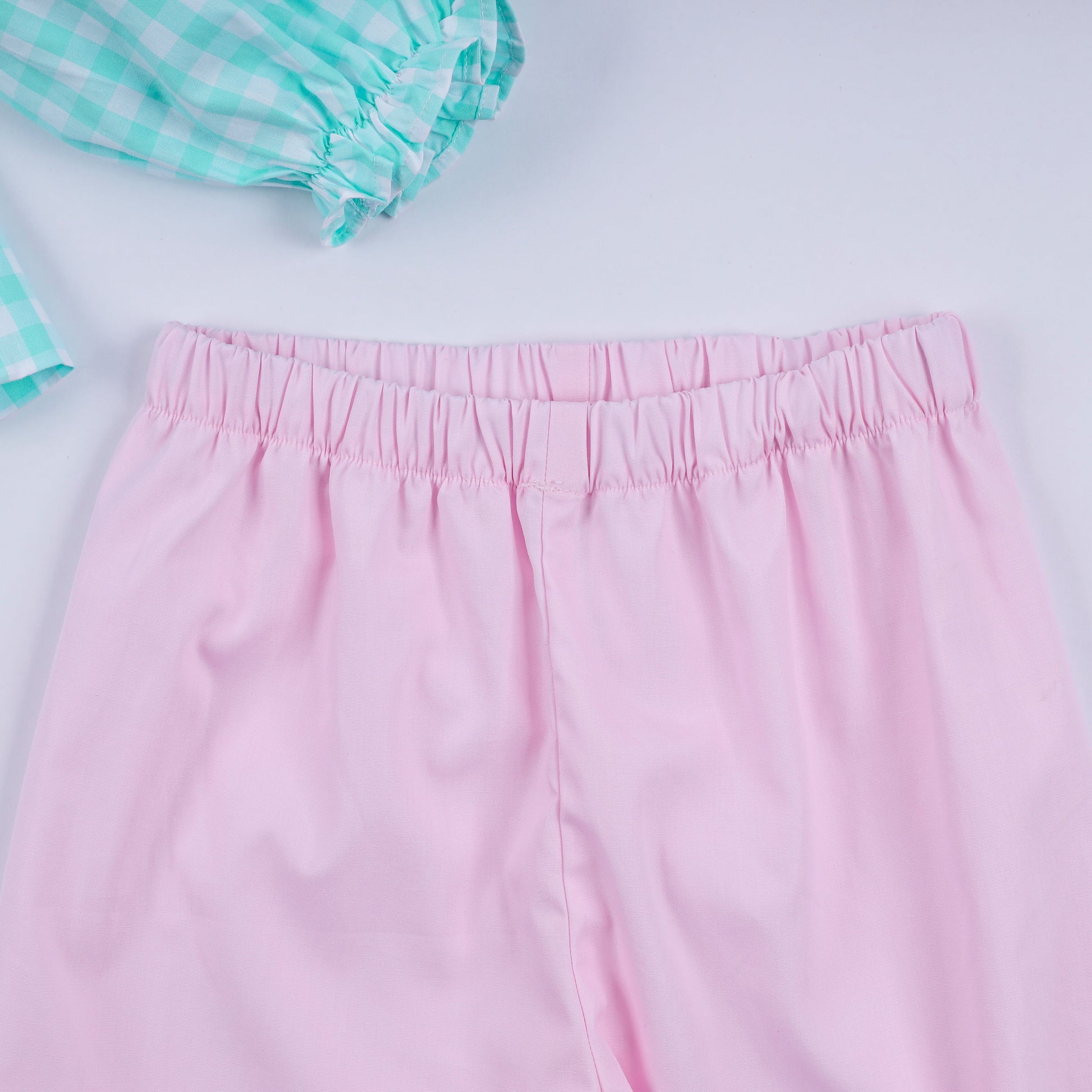 Deck the halls in festive style with this charming mint Christmas nutcracker set! Hand-smocked details add artisanal charm to soft gingham fabric, while delicate ruffle pants bring playful movement to every twirl and dance. Perfect for holiday photos, family gatherings, or spreading seasonal cheer. This whimsical two-piece combines timeless nutcracker imagery with modern comfort, making it an instant favorite for little ones who love the magic of Christmas.
