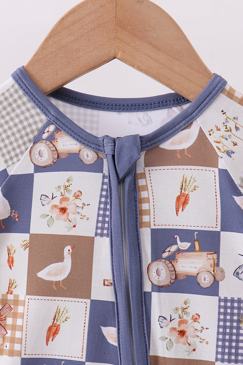 Hop into comfort with this adorable navy checkered farm bamboo romper! Crafted from soft, breathable bamboo fabric, it's perfect for little ones who love outdoor adventures and playtime. The charming checkered pattern brings a touch of countryside charm, while the romper design keeps kids cool and unrestricted as they explore. Easy to move in, gentle on sensitive skin, and oh-so-cute—this is the go-to piece for farm-fresh fun and everyday wear.