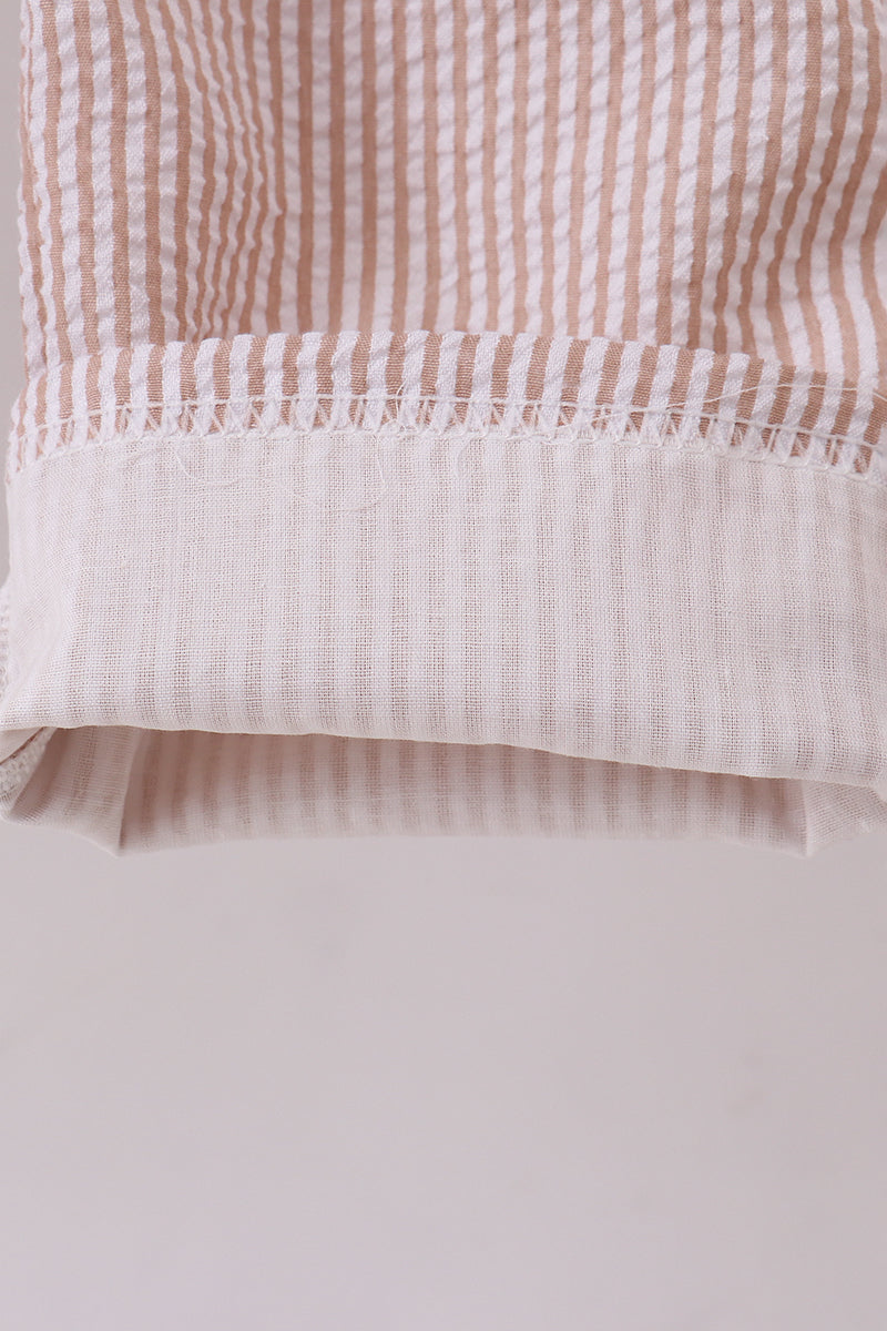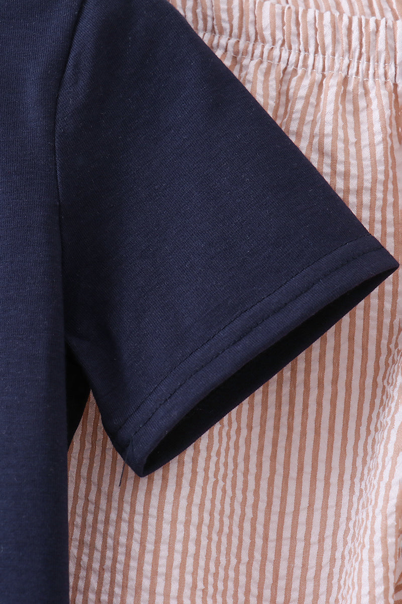 Game day just got a whole lot more fun! This navy seersucker pants set brings the perfect blend of classic style and spirited energy. The crisp seersucker fabric keeps you cool and comfortable, while bold sports embroidery and vibrant stripes add personality to every wear. Whether you're cheering from the stands or celebrating with friends, this set delivers that preppy, game-day vibe that scores major style points. Perfect for tailgates, watch parties, or anyone who loves to show their team spirit in style.