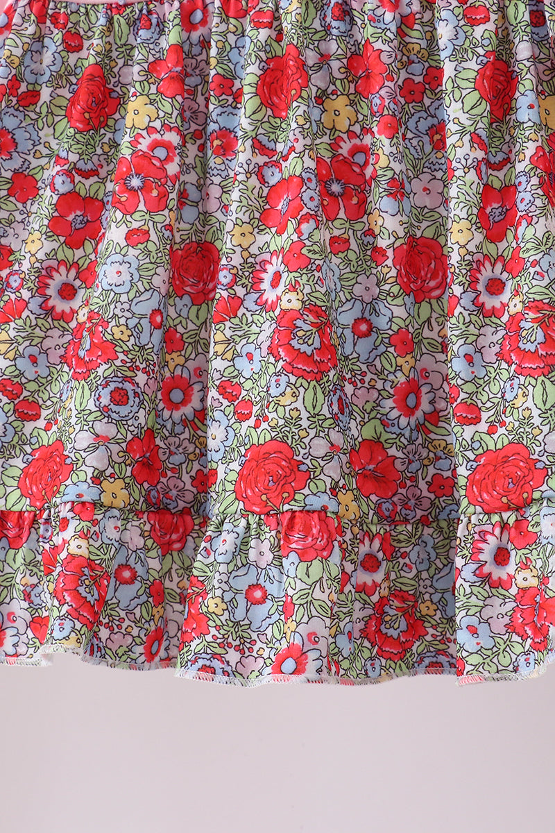 Pink christmas tree applique ruffle dress set