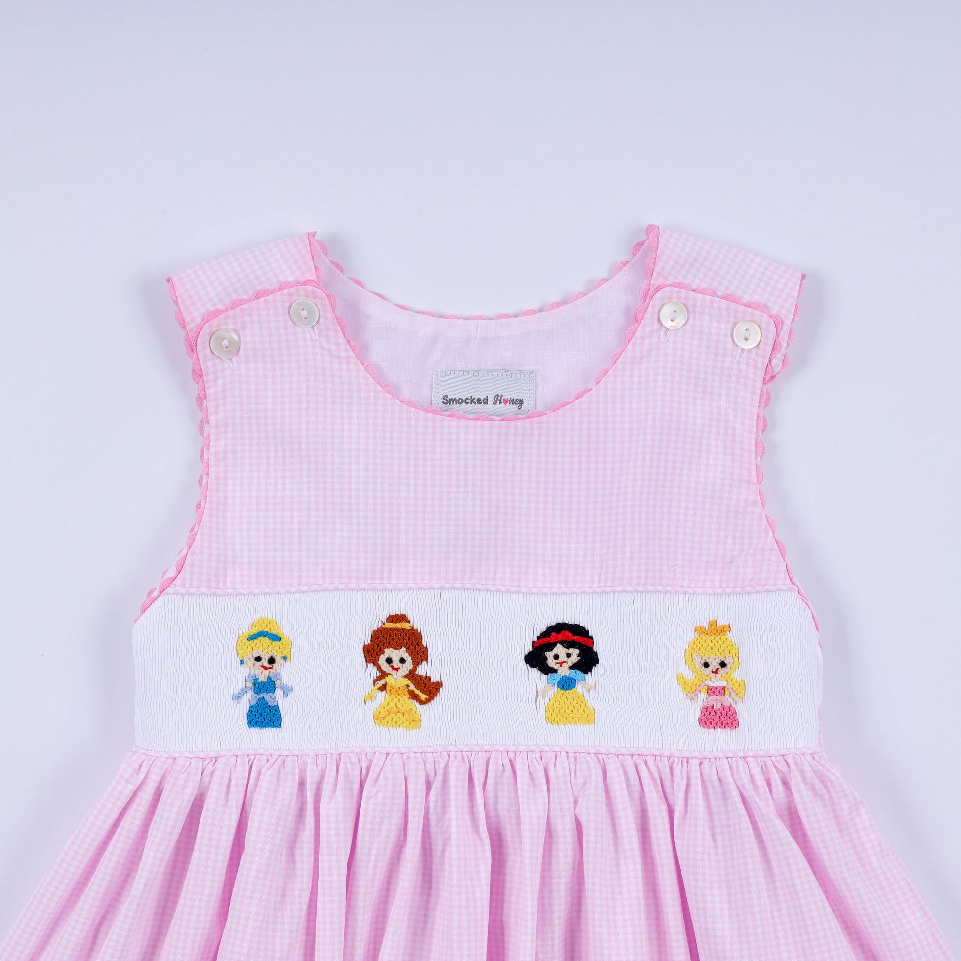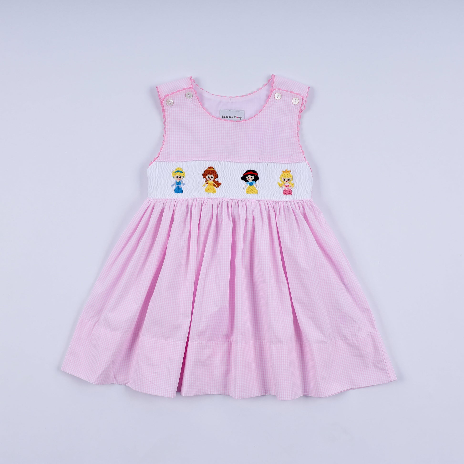 Twirl into enchantment with this darling pink princess dress, where timeless plaid meets whimsical hand-smocked details. Each delicate smock is crafted with care, creating beautiful texture and dimension across the bodice. The soft pink hue and classic plaid pattern make it perfect for special occasions, dress-up adventures, or simply feeling like royalty every day. A charming choice for little ones who love a touch of magic and elegance.