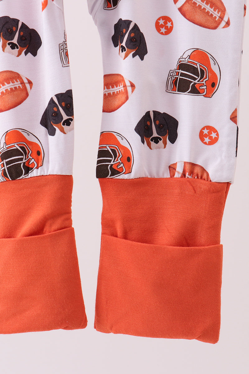 Celebrate sunny days with this premium orange Tennessee print romper made from soft, breathable bamboo fabric. Designed for comfort and style, it's perfect for playful adventures or relaxing afternoons. The vibrant orange hue and unique Tennessee print add a cheerful pop to any outfit, making it a fun wardrobe favorite. Easy to wear and gentle on the skin, this romper brings a touch of southern charm to your everyday fun.